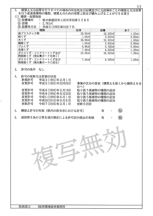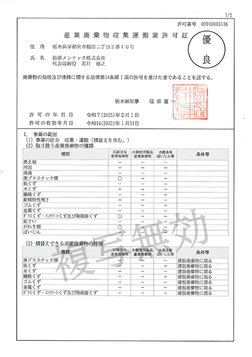 当社は、栃木県内の一般・産業廃棄物の収集運搬を行っております。